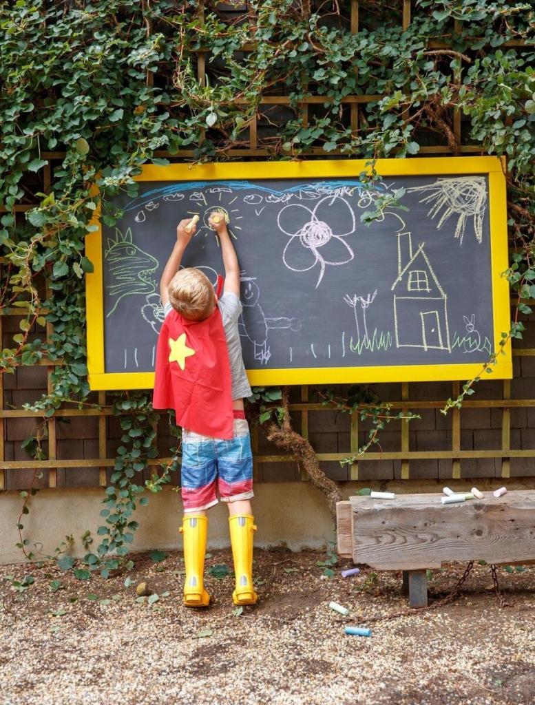 Creative kiddos will love the chance to make beautiful things outside, and you’ll be happy not to have to clean up chalk dust! You may have seen smallish outdoor chalkboards before, like this one by Crayola, but making one yourself means you can go big or go home (well, you’re already at home, but you get our drift). Courtesy of the folks at Parents.com, this plus-size chalkboard is a great idea to bring out the best in your budding artistes.